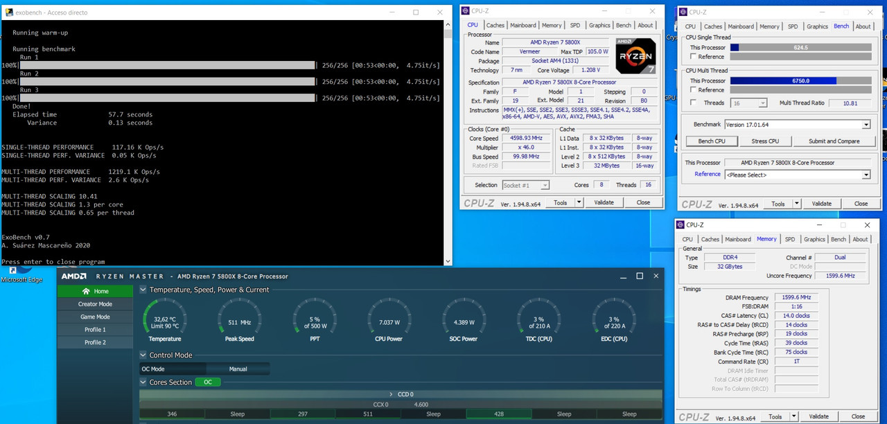 Aqui os dejo una captura de por donde voy por el momento con el 5800X con la MSI Meg X570 Unify, esperando nueva bios para poder subir las memorias a más de 3200 .